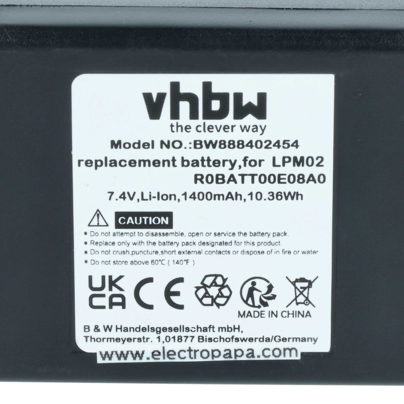 Opis:- Zamjenska baterija razvijena je po dizajnu i tehnologiji njemačkog proizvođaća VHBW sukladno najvišim standardima, što garantira odličnu kvalitetu